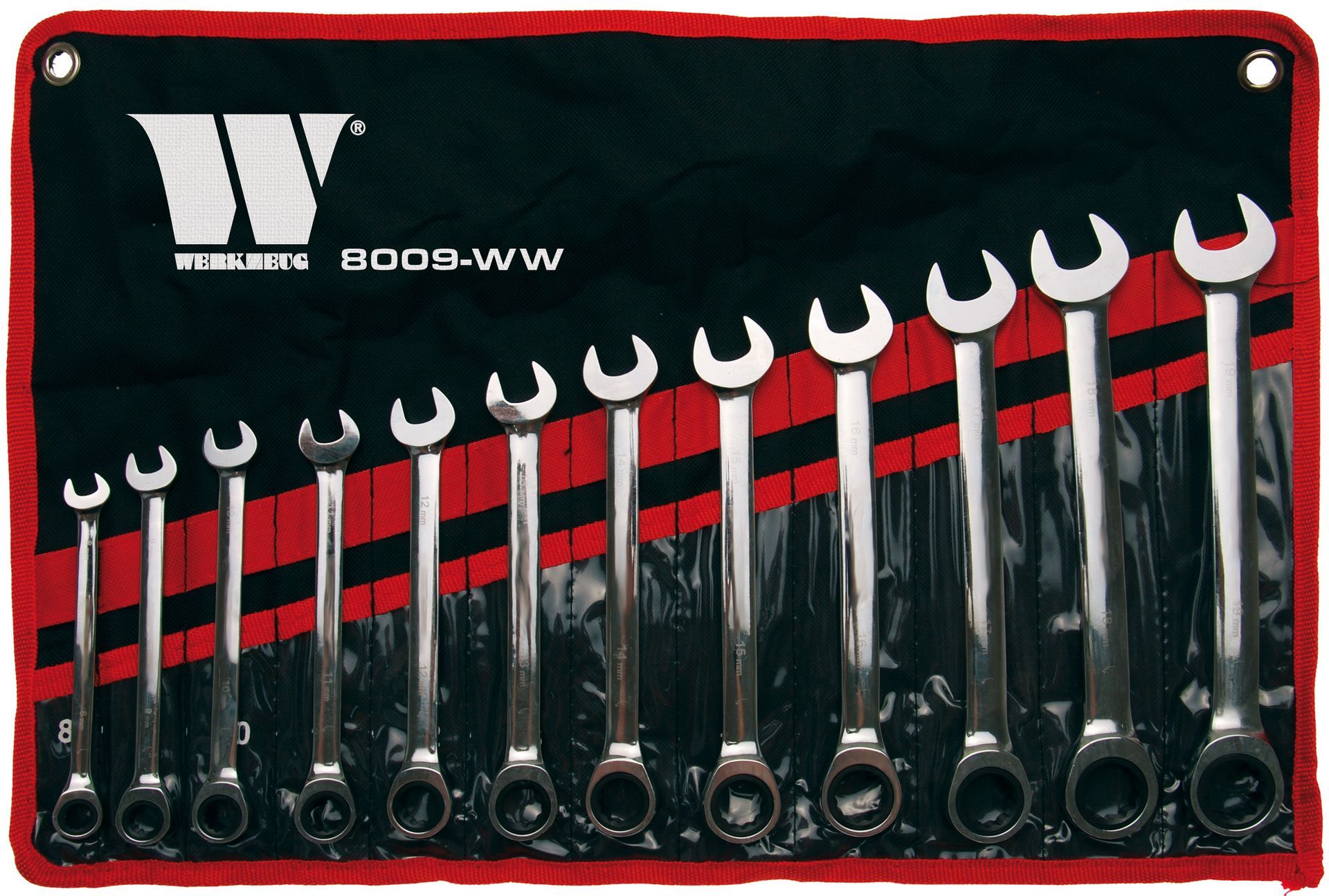 - 12 darab racsnis csillag-villáskulcs, méretek: 8, 9, 10, 11, 12, 13, 14, 15, 16, 17, 18, 19 mm