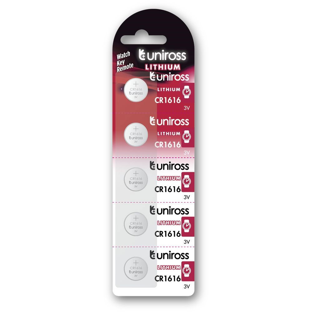 Uniross CR1616 3V lítium gombelem, 5 db/bliszter
